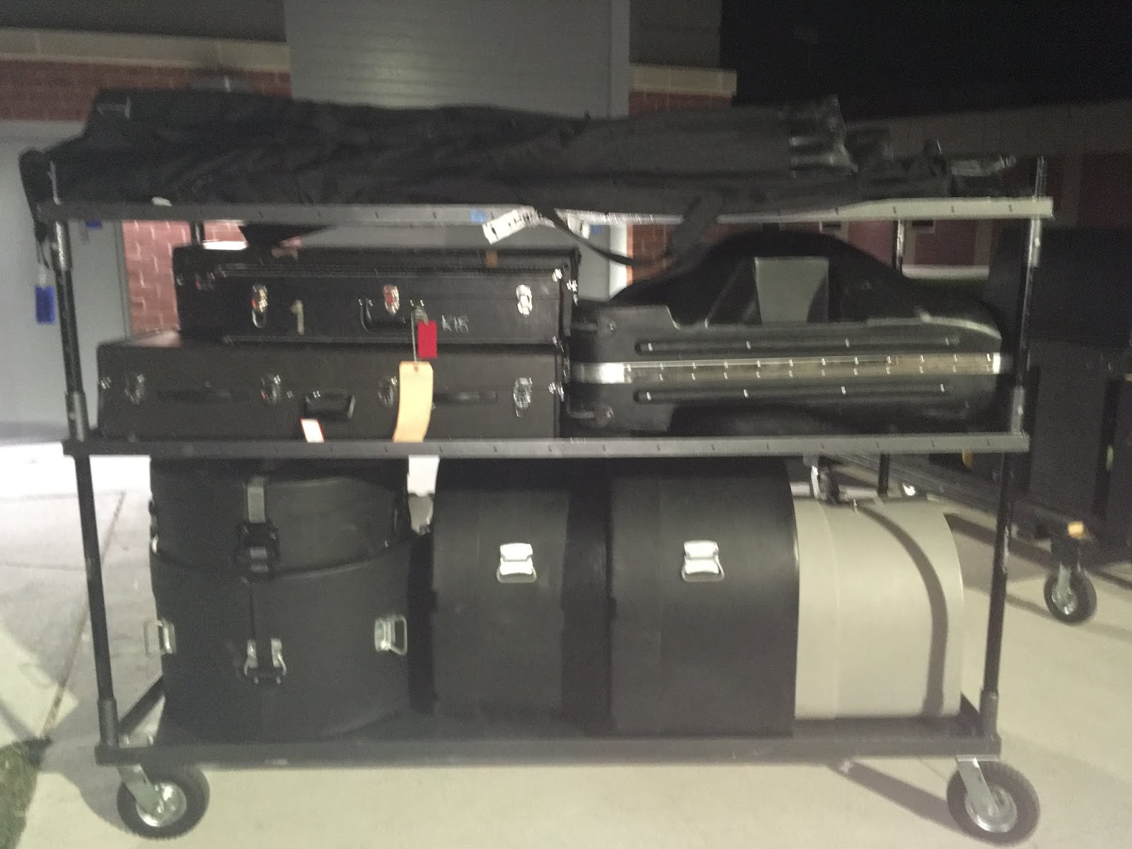 We do have two trailers, the regular blue Band trailer for the font ensemble, battery percussion, sousaphones, etc., and the second trailer for the podium stands, extra pit equipment, props and hat bags (during competitions).